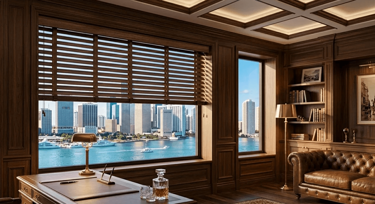 Porter Lake horizontal blinds bring warmth, richness, and natural character to your windows. Available in real hardwood or composite materials, they offer a refined look that complements both traditional and modern interiors.